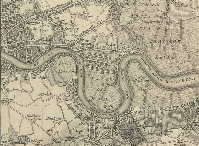 This reminds me of why I could not think of living in a city! Anne, do you have any information on the ‘Isle of Dogs’ that I see on the map just below West India Docks? Just curious.