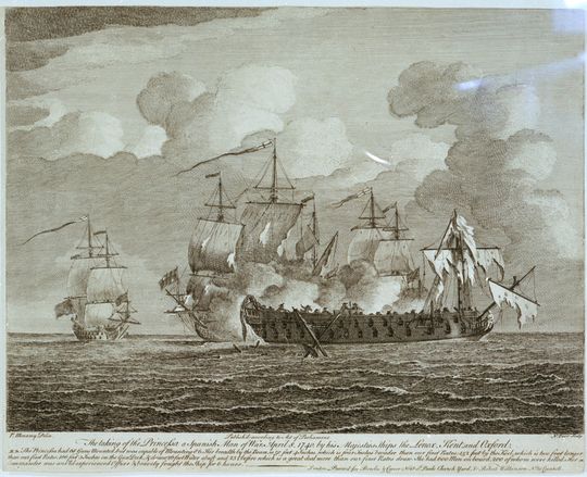 The taking of the Princessa a Spanish Man of War, April 8, 1740, by his Majesties Ships the Lenox, Kent and Oxford