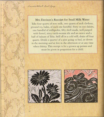 Lavender Water & Snail Syrup: Miss Ambler’s Household Book of Georgian Cures and Remedies, Nicola Lille & Marilyn Yurdan with illustrations by Laura Lillie, The History Press, Stroud, 2013. ISBN 978-0-7524-8995-7