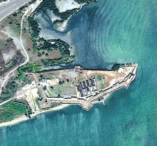 Fort Augusta today showing the Port Kingston Causeway top left, which now encloses Hunts Bay (from Jamaica Observer online 6 August 2012)