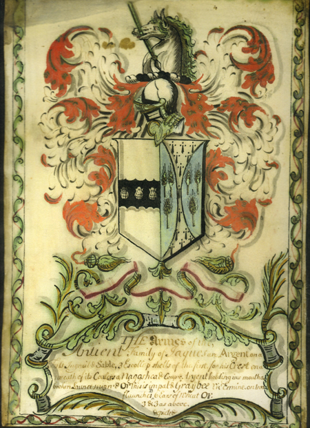 This website and the book A Parcel of Ribbons had their origins in my search for the truth behind the story of an Indian Princess which had come down through the family, together with various papers from my great-aunt Alice. She had left a painting of a coat of arms to a cousin of my mother who supplied me with the image above. It seems highly likely that it was this painting that was referred to as ‘arms’ in the inventory. It was also this painting that confirmed for me the link between the Jaques and Graybee families.